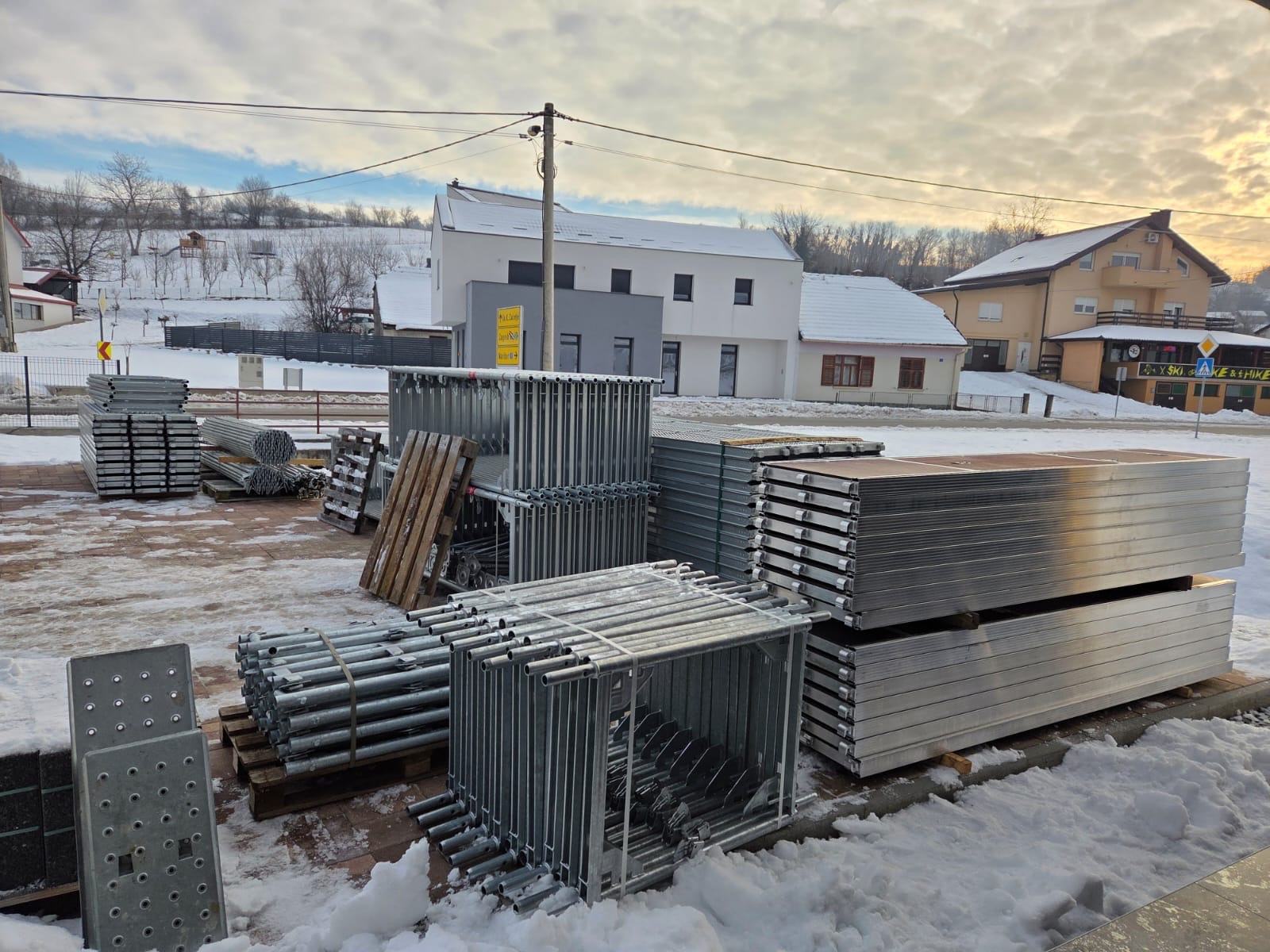 Najam i transport skele za izvedbu fasadnih radova. Nova tipa Layher, čelične podnice.